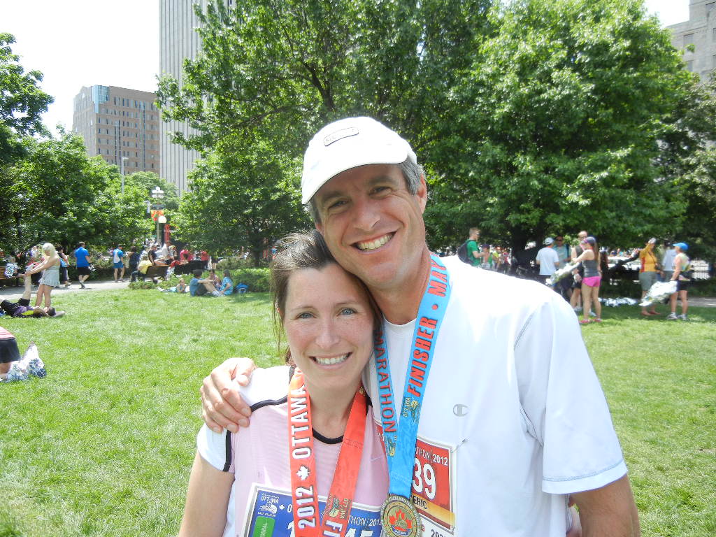 Le départ, tout près du parc de la Confédération et les premiers kilomètres sur les bords du canal Rideau sont tout simplement parfaits. De la place en masse pour tout le monde, une belle vue, merveilleux pour chasser la nervosité (comme si j’en avais, hum hum…). C’est durant cette partie que j’ai suivi le lapin de 3h15, Brett Titus, une véritable machine. Ce gars-là fait des Iromen et s’amuse, entre les courses, à faire le lapin de cadence dans les marathons. Il avait fait la même job à Mississauga trois semaines plus tôt. Et il avait joué les mêmes rôles, aux deux places, l’an dernier. Pour l’avoir suivi deux fois, je dois dire qu’il fait un excellent travail.
