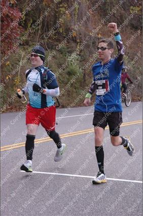 Mes deux compagnons de route, Christopher Pilla et son pacer. Chris terminera en 3:08:35. La grosse différence au niveau temps s’explique par le fait qu’il était un « marron »