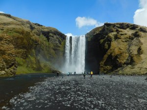 Durant une tournée des trois sommets suite à son retour d’Islande, Pierre m’avait parlé d’un endroit très particulier: la chute Skogafoss. Je le cite approximativement ici: « Les touristes arrivent en bas, ils prennent 15-20 photos devant la chute, puis ils s’en vont. Pourtant, si tu te donnes la peine de monter les marches, non seulement la vue de la chute y est superbe, mais il y a un sentier qui mène à une autre chute. Puis une autre un peu plus loin. Puis une autre. Encore une autre. Et une autre. Au total, il y a une vingtaine de chutes à voir pis y’a presque personne ! »
