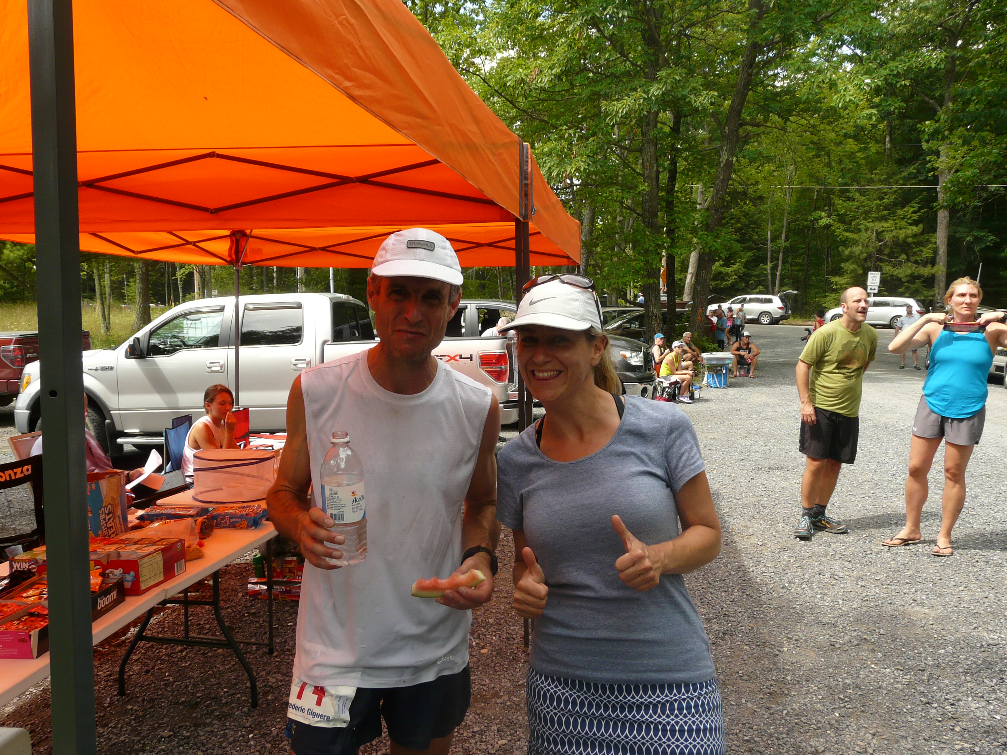 Maintenant, est-ce que ce parcours est plus difficile que celui de Massanutten ? Vrai que j’y ai mis près de 3h30 de plus, mais comme je disais, avec la chaleur… Honnêtement, je ne sais pas. Certaines montées (et certaines descentes !) sont épiques, rien de ce que j’avais vu auparavant ne s’y compare. Mais en ce qui me concerne, dans des conditions similaires, je pense que Massanutten est plus difficile pour moi, rapport à mes lacunes techniques.