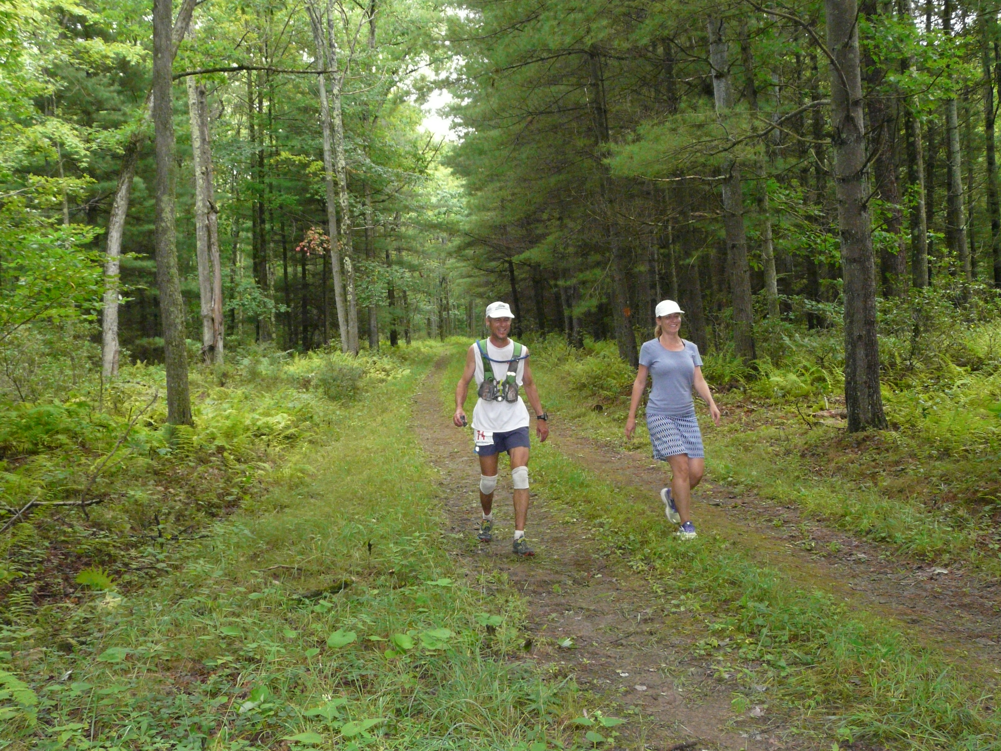 Courir en équipe – 28 heures. C’est le temps que nous avons passé ensemble dans les bois, Julie et moi. Ajoutez à ça le voyage en auto, le dîner, etc. Des discussions, nous en avons eu plein et peu à peu, les barrières socio-naturelles sont tombées. J’ai déjà lu quelque part que si vous voulez vraiment connaitre quelqu’un, vous devez courir un ultra avec cette personne. Hé bien, nous ne nous connaissions pas beaucoup avant le départ, mais ces heures ont fini par faire de nous de véritables amis.